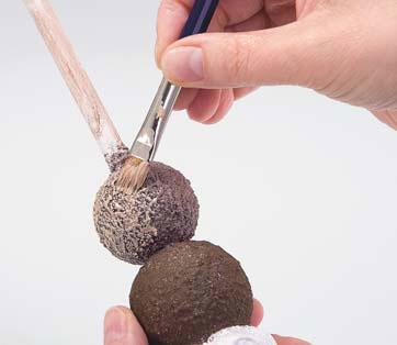 After drying, create some balls with granite colour. The other balls already painted with Structure Paste will get a brown paint.