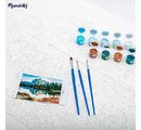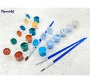 Achieve professional painting results! The creative painting by numbers is sure to succeed. And this is how easy it is: Provide a brush and a glass of water. Now color the largest numbered areas with the corresponding color. Piece by piece, that is, area by area and color by color, complete the work of art. Close the paint pots tightly again.