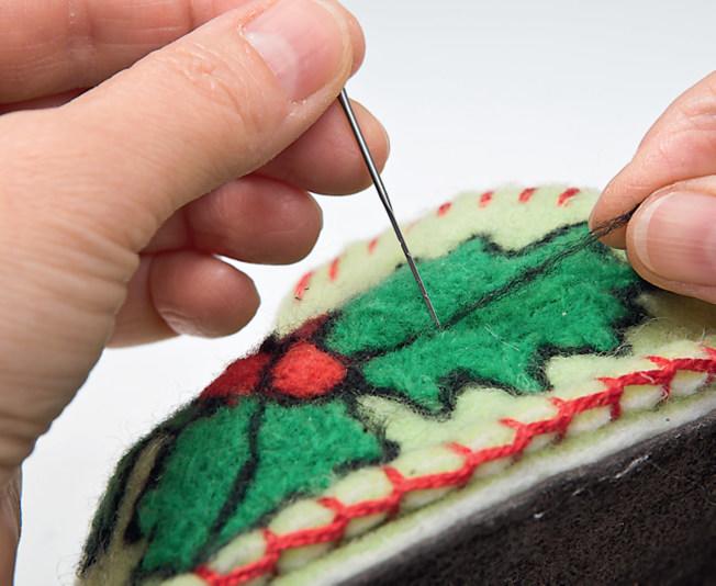 Decorate the finished felted motif with wooden beads.
