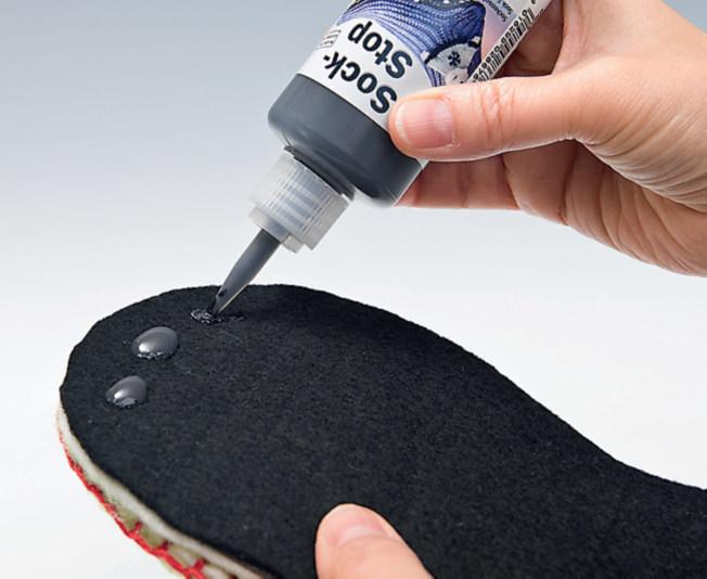 Finally, place dots with sock-stop on the black sole and allow to dry