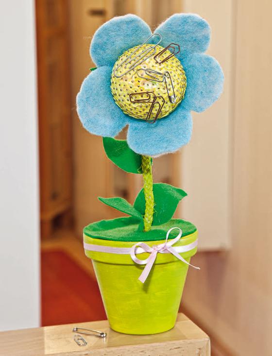 The felt leaves and the flower are fixed to the figure wire with hot glue. Finally, simply put the entire flower into the flower pot