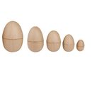 Paper-mâché eggs, divisible as a set of 5 with a height of about 8.5 - 23 cm and a Ø of about 6 - 15 cm. A beautiful set to fill and give away.