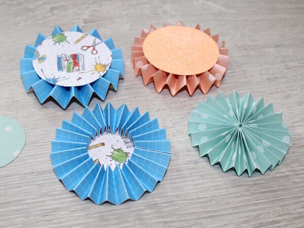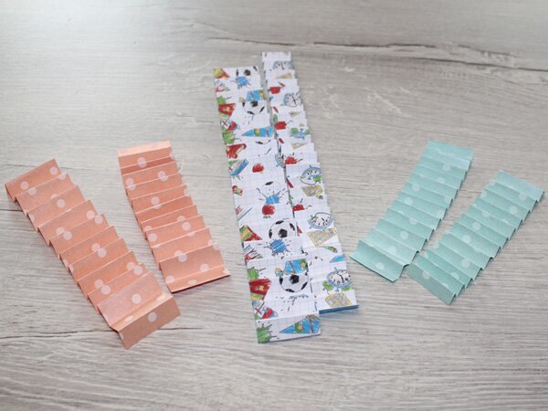 Then fold your strips in a zigzag pattern. You can vary the spacing. However, they should of course remain the same for each rosette. The wider the spacing, the higher your rosette will be later.