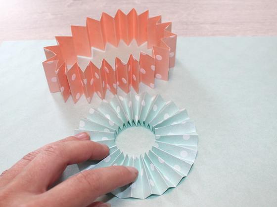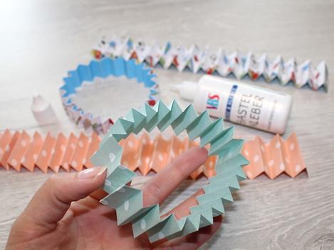 Glue your folded strips together to form a ring. Depending on the number of paper strips , this will consist of either one or several pieces.