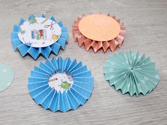 Then press this ring flat onto your work surface and stick on a circle of Paper or cardboard to keep the rosette in shape.