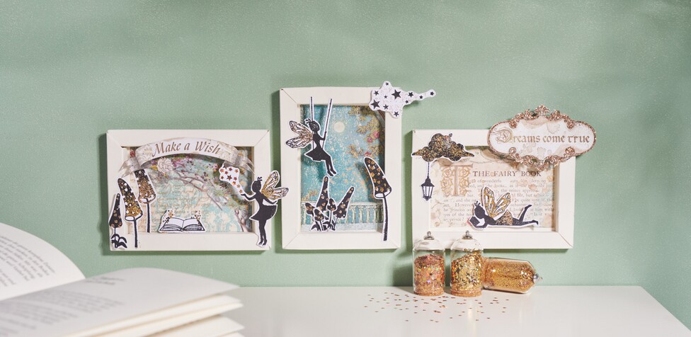 Arrange each motif on the picture frame and then glue them in and to the Little Paper Frame using craft glue or 3D glue pads.
