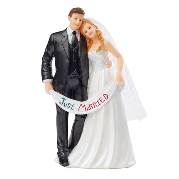 Pour into the inside of the cup flower arrangement foam and place the wedding couple on top. Stick the bamboo skewers into the flower arrangement foam and attach the polystyrene heart to them with a little glue.