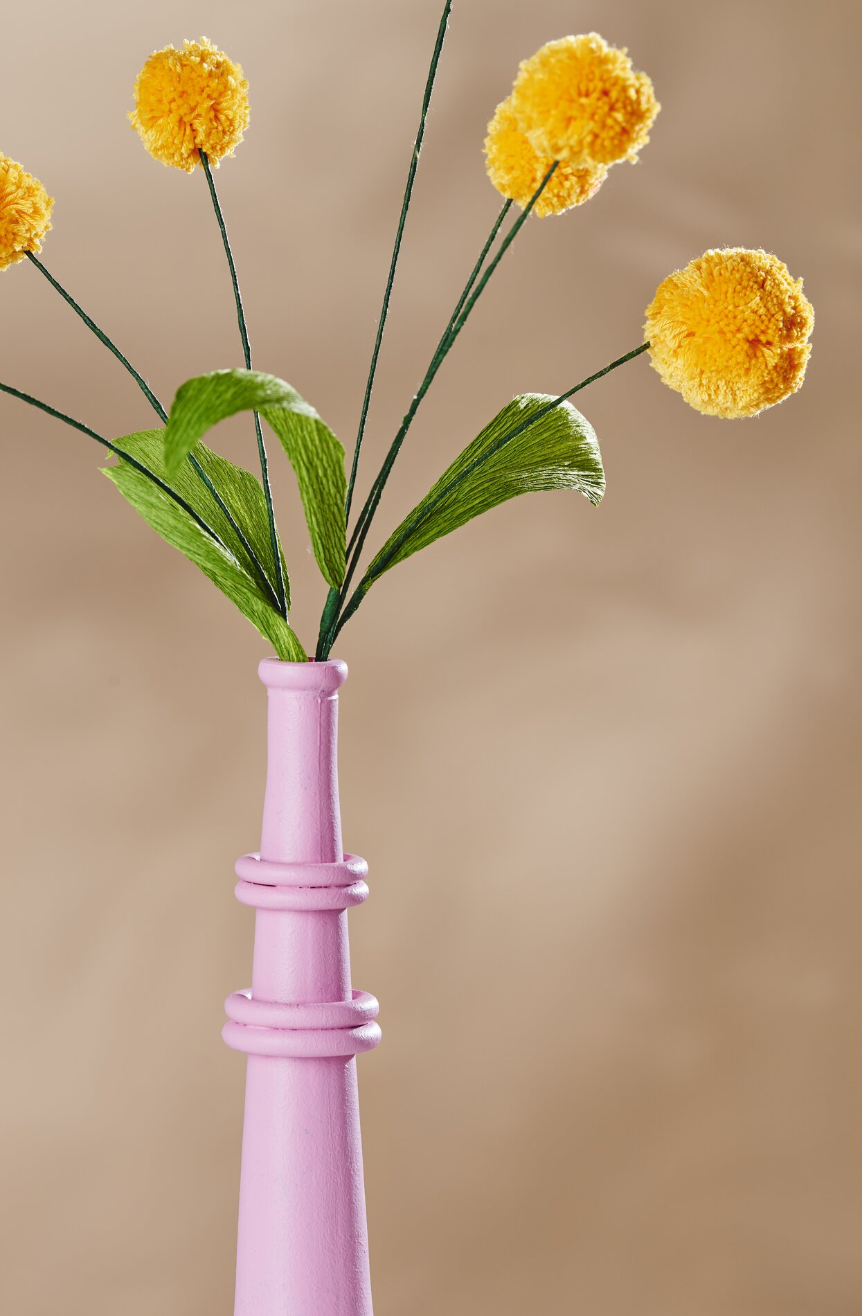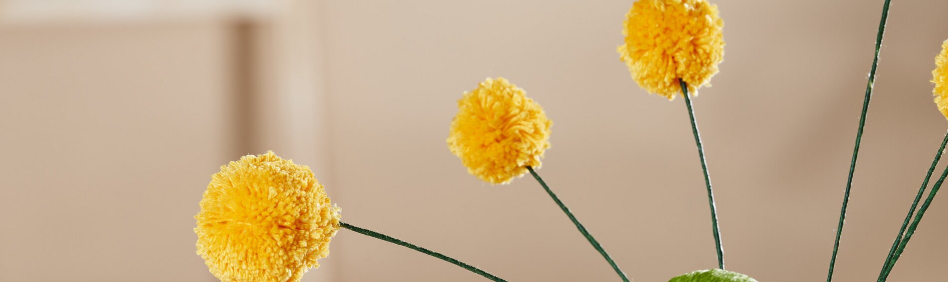 In this idea, the popular trend flower "Craspedia" is easily homemade! Learn here how you can make the pretty pompom flowers yourself and arrange them in a vase with the help of the VBS Pomponmaker set.
