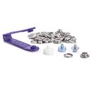 24 Prym silver-coloured eyelets and discs, each approx. Ø 8 mm, including punching tool.