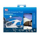 The Vario Creative Tool is compatible with all existing Prym tool sets and utility items from the Prym sewing-free range. It is equipped with 4 different hole tools in sizes 2.5, 3.0, 3.5 and 4.0 mm, which offer you a variety of possible applications. Whether decorating jeans with rivets, attaching push-studs to baby clothes or punching holes for a hoodie cord and adding eyelets - the Vario Creative Tool makes it possible. Thanks to the lengthwise and crosswise measurement, the plastic feet for a secure stand, you can implement your projects precisely and without fatigue.