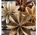 To make the folding flowers at least 6 punched parts are needed. Of course, more can be created as desired. Thus, the shape changes and gives the opportunity to create new paper flowers again and again. With 6 petals, the finished flower has a Ø of approx. 11.2 cm. To make your folded flowers unique and individual, use different motif paper or stamp the punched parts with motif stamps before folding. The creativity can be given free rein.