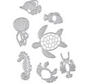 Beautiful Punching template "Sea animals" suitable for all common punching and embossing machines. They 7 stencils in the shape of fish, seahorse, jellyfish, turtle, lobster and crab have a motif size of about 2.5 - 4.5 cm.