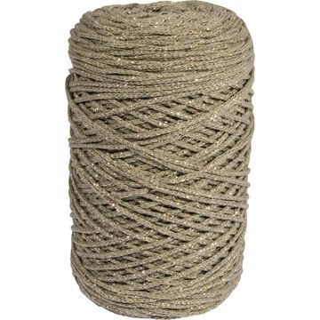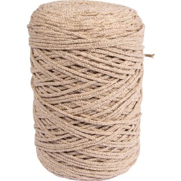 Discover the recycled Yarn with gold thread - your creative companion for extraordinary projects! With a Ø of 4 mm and a running length of 58 m, this yarn not only offers you a great look, but also versatile application possibilities.