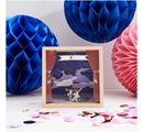 The double-sided printed motif papers with backgrounds and accessories to cut out are designed for many different themes, events and occasions. Not only scenes for birthday and wedding can be designed, but also backdrops for theater & concerts, barbecue & garden party, various sporting events, leisure activities, beach and much more. The background motif is simply cut out and placed in an object box or used for a greeting card. The various objects that fit the chosen scene are also cut out and partially folded or glued. This creates wonderful 3D effects and impressive scenes with lots to discover.