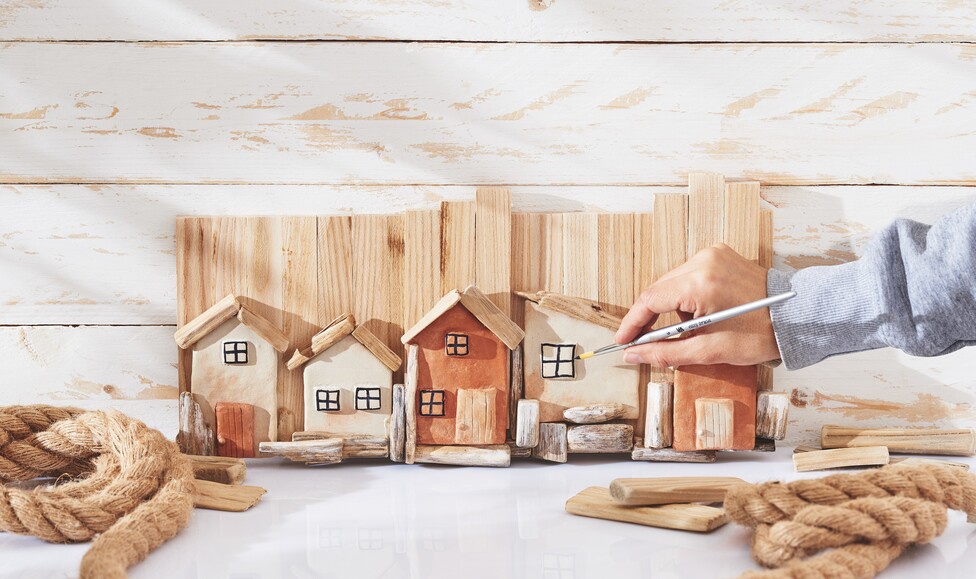 Soft clay can also be shaped later in combination with water. Therefore, in the next step, paint your houses with