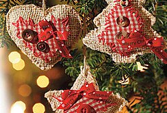 Very quickly and easily, an individual and creative tree decoration for your very personal Christmas decoration is created from jute fabric, check fabric and some accessories.