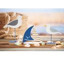 Make this sailboat an eye-catcher! By treating it with acrylic paint, Chalky Color, Napkin,Straw silk paper and maybe some glitter, this sailboat will quickly become an eye-catcher. With thin Jute ribbon or thinner Cord even those can be Linenstretched. Buttons are used to wind up the ropes on board. A fabulous decoration and a nice gift for people who love the sea!