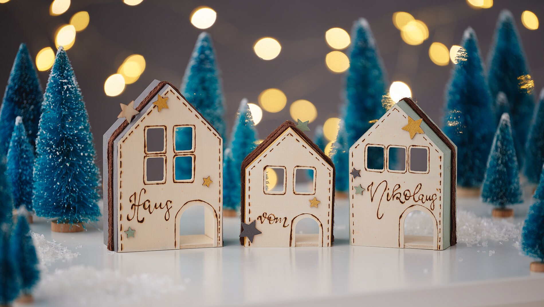 Create a trio of houses from Santa Claus with little effort from three plain wooden houses. A great idea with paint and brand painting.