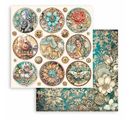 Immerse yourself in a magical world full of fantasy and creativity with the Scrapbook block "Fantasy World" from Stamperia. This item is part of the collection of the same name and offers you 10 sheets of paper printed on both sides with various motifs such as clockworks, flowers, tags with lettering and sayings, characters from a fantasy world, steam locomotives and ornaments. With a size of 30.5 x 30.5 cm and a weight of 190 g/m², this motif paper is perfect for your craft projects.