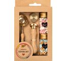 You will receive two jars of 54 wax seal colours each in white/pink and gold/light blue. The included melting spoon allows for easy application, while the seal stamp with wooden handle and the two seal motifs - lettering and heart - allow for customisation.