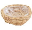 The basket has an outer diameter of approx. 13.5 cm and an inner diameter of approx. 10.5 cm, as well as a height of approx. 5 cm. It is made of sturdy seaweed and is lined with plastic on the inside. Due to its nature, it is suitable for both indoor and outdoor use. So you can use it in your living room as well as on your balcony or in your garden.