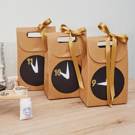 3. Attach three of the clocks to the packaging and decorate them with a bow as desired.