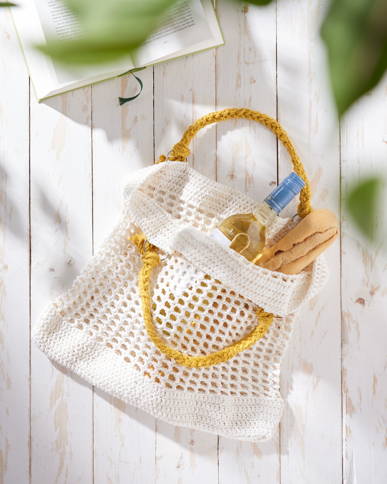 Pocket bottom from firm crochet stitches At the beginning cast on 142 air stitches and close with 1 warp stitch in the first air stitch to the ring.