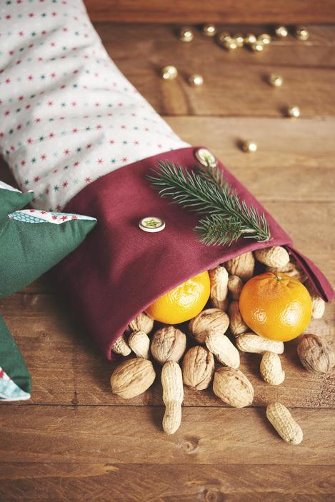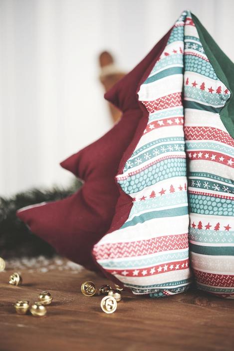 The Pattern "Christmas decoration" from McCall's will be delivered with detailed multilingual instructions. The 3D Fir and the Santa boot will be cut and sewn as described in the instructions using the pattern, then stuffed with Fill wadding and decorated with Fir and buttons.
