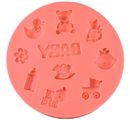 The soft silicone form "Birth" with a Ø of approx. 10 cm and a height of approx. 1 cm is suitable for the production of 10 cute motives suitable for birth. The filling quantity is approx. 10 ml in total. The figures with a size between approx. 1.4 cm and 3.4 cm can be modelled with relief casting compound, soap or Casting resin . The small motifs from drinking bottle, teddy bear and pram to duck and rocking horse are also wonderfully suitable for decorating candles. For this purpose, fill the silicone mould with candle liners in the colour of your choice and let it harden well. There are no limits to the creativity of candle design
