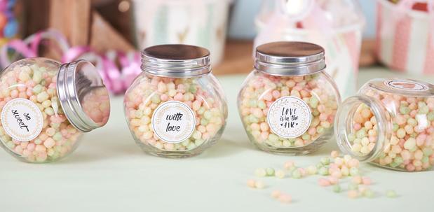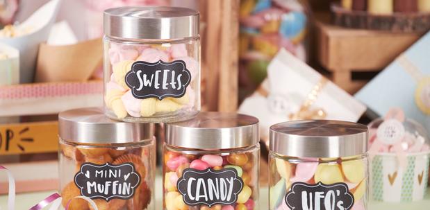 Here you will find a large Selection of labels, ribbons, stickers and other decorative items to help you match the containers to your overall image of the Candy Bar.
