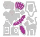 Now it's getting scary! With the Sizzix Thinlits punching template "Halloween Motifs" you can make matching motifs for paper designs on the theme of Halloween. The popular figures cat, bat, pumpkin, tombstone, lantern, ghost, cake and candles have a punched out motif size of approx. 1.0 x 1.6 to 4.1 x 5.7 cm. The template consists of 14 parts and is suitable for all common punching and embossing machines.