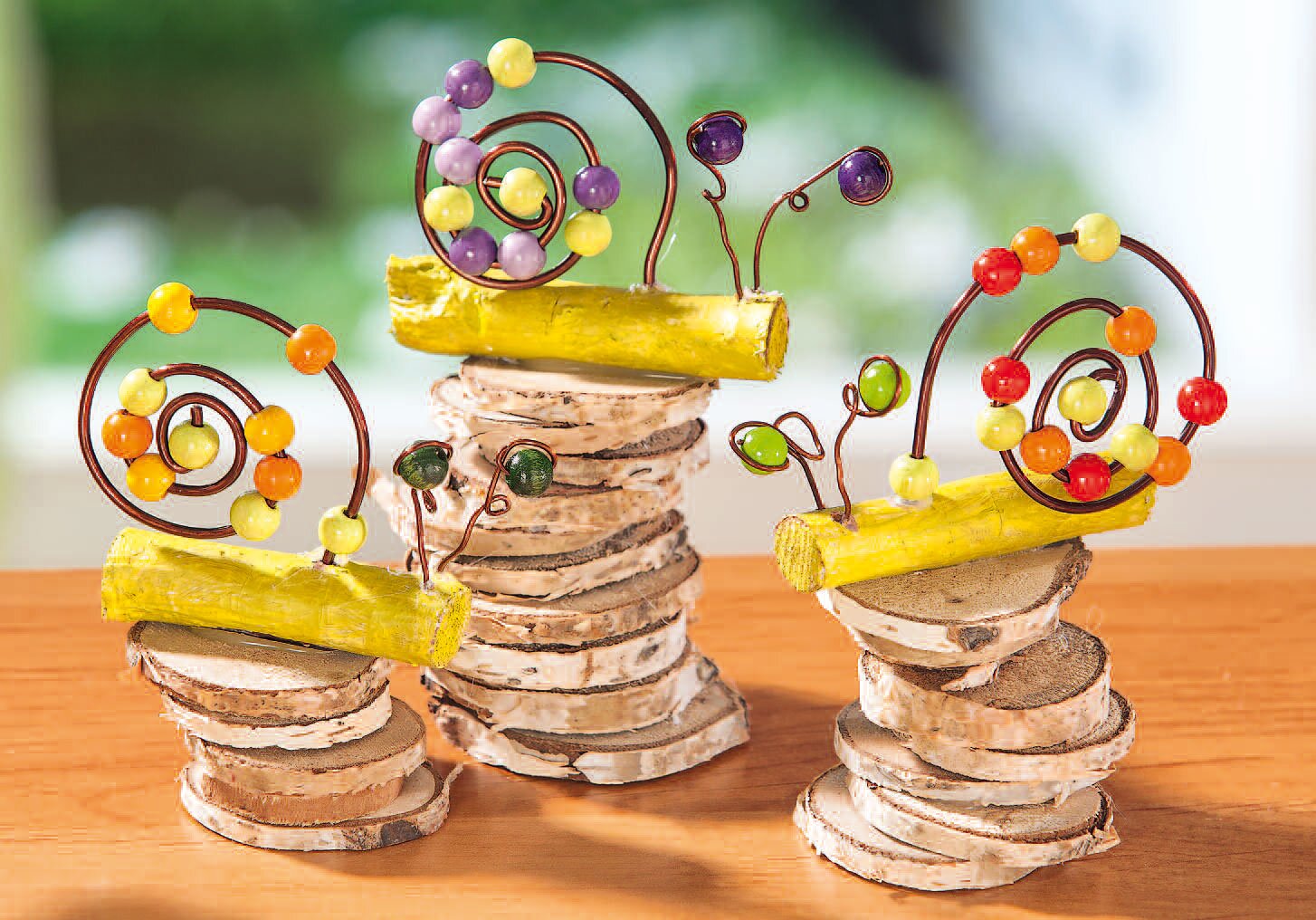 Today we'll make little colorful snails out of wire and wooden beads. What are your favourite colours?