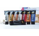 Solo Goya Acrylic "Effect Colors" as a set of 8 pieces with 20 ml each in the colors Silver, mother of Gold, Copper, pearl white, Amber, Ruby Red, sapphire blue and Anthracite. It Acrylic paint is made on water base. It has a high colour intensity and brilliant luminosity, has a soft, smooth consistency with a medium viscosity and can be painted creamy. The paint is water-dilutable and dries quickly and evenly matt. After drying, the Acrylic-paint is waterproof