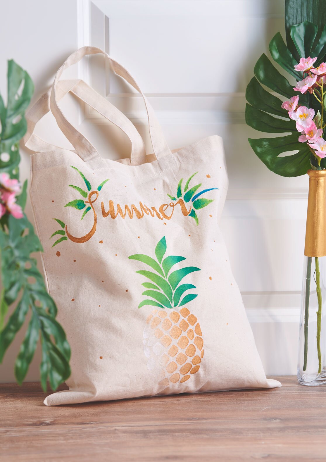 3D pasteonto the stencil motif on the bag. With colour transitions you can make the motif even more beautiful. Now pull off Stencil and add the finishing touch to your bag with handlettering.