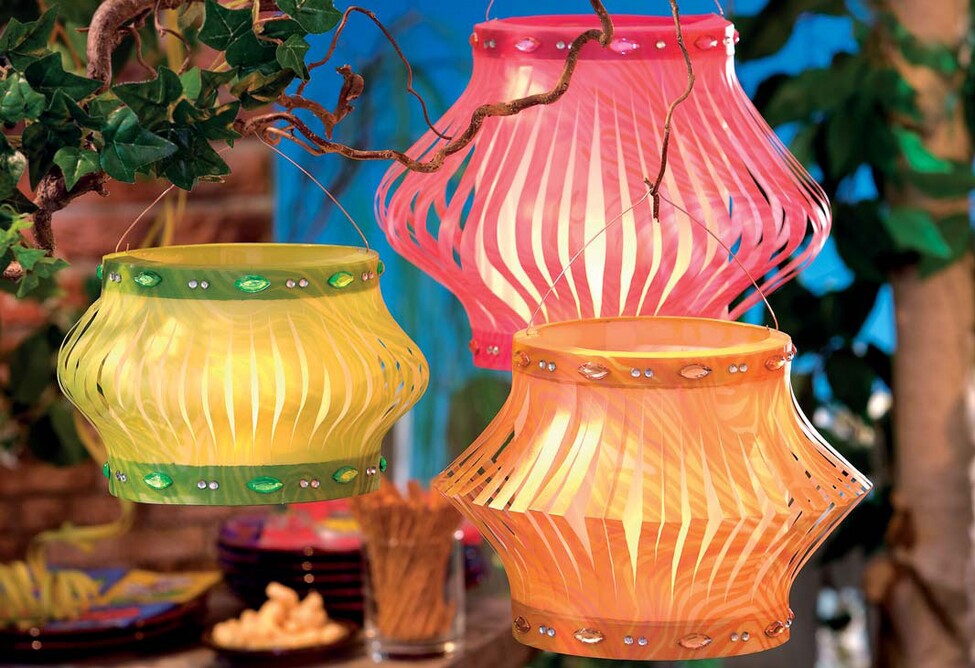 Paint one lantern base and cover each with Handicraft paint in May green, Pink and Carmine Red.