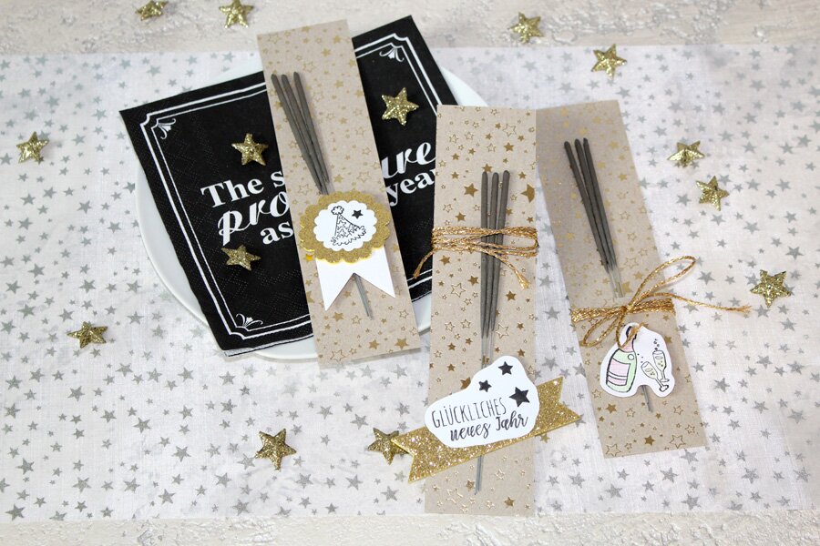 When inviting guests for New Year's Eve, you naturally want to decorate your home according to the occasion or delight your guests with small details. After all, it should sparkle everywhere. So why not just leave a present for everyone? Of course, the wrapped sparklers are also wonderfully suited as a small gift, if you are invited yourself, or just for in between.