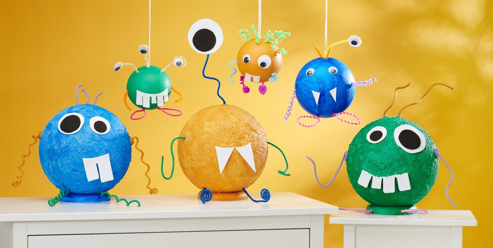 The funny monsters bring good mood into the home. They are made of styrofoam balls that look very friendly and funny when painted and shaped into a monster. The craft idea is therefore also ideal for crafting with children. Learn how to do it here.