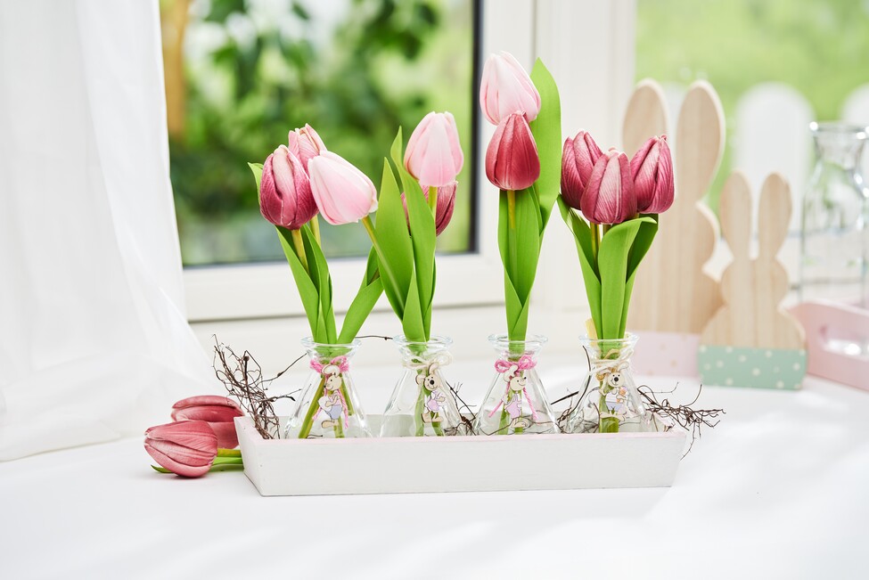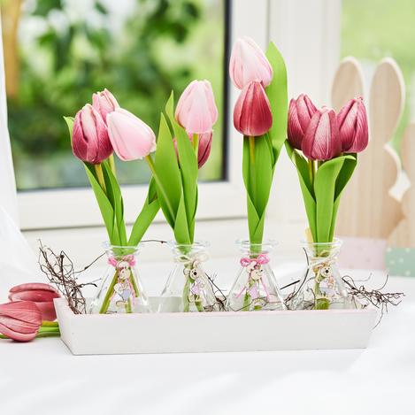 With only little effort, you can conjure up a small table decoration in your home that will bring spring into your home. And the best thing is that these artificial tulips are decorative but won't wilt and can be replaced with seasonal flowers at any time, keeping your table decoration timelessly chic.