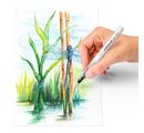 The robust nylon tip is particularly dimensionally stable and the brushes are suitable for all water-based paints. The soft shaft and the valve system guarantee an even release of water. With light pressure on the shaft, the water flows into the brush hairs in a controlled manner and thus achieves great resultse in Watercolor design. Impressive landscapes, scenes and artistic motifs get a classy look with watercolor effects.