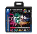 The STAEDTLER Pigment calligraphy pen is the perfect companion for all creative minds who value high-quality and durable craft materials. With the cardboard case, which contains 12 pigment calligraphy pens in different colors, you always have the right color selection to hand. The felt-tip pens are equipped with a calligraphy tip that allows a line width of approx. 2.0 mm. This allows you to draw both delicate and broad lines and perfect your artistic writing techniques.