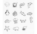 The stamp set "Zoo" contains 15 stamps with motives from the animal kingdom. The motifs range from jellyfish to penguin, shark, clownfish, dolphin Starfish and polar bear.