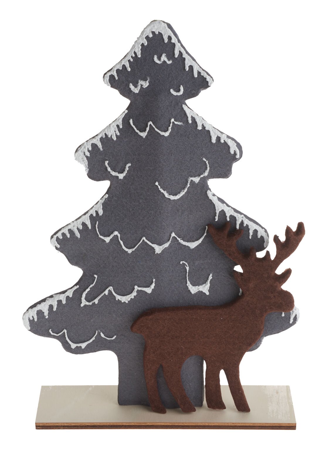 The cut out reindeer is glued in front of Fir - your Christmas fir with reindeer is ready. When arranging on the table after you can decorate around the felt figure fir green and Decorative snow