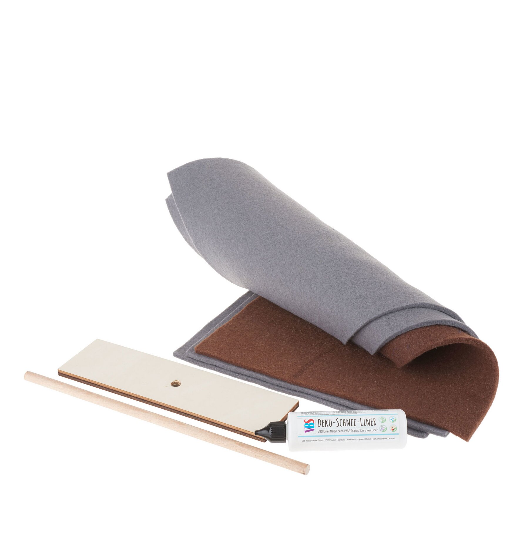decorative snow liner. Painting on the snow contours is especially fun. Then glue both pieces of fir felt together at the edges and simply place the so designed felt cover on the wooden stand