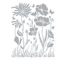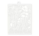 The Stencil "Atelier Flower" is approx. 20 x 25 cm and has a thickness of 0.25 mm. The motif from the Atelier collection shows a Meadow with various flowers.