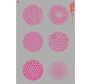 The "circlesStencil" in DIN A5 format shows six circles with different patterns and a Ø of approx. 5 cm each.