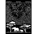 Bring a piece of Africa to your home! This Stencil "Savannah Memories" from the collection Savana is approx. 20 x 25 cm in size and has a thickness of approx. 0.25 mm. The motif shows a part of Africa, a cute elephant with baby, trees and writings. The elephants are approx. 6.1 cm and 3.0 cm tall.