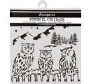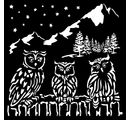 Enter the magical world of nocturnal creatures with Stencil "The Owl's House - Owls". This high-quality stencil with an enchanting motif of owls on a fence surrounded by fir trees, snowy mountains and a sparkling starry sky will bring winter magic to your creative projects.