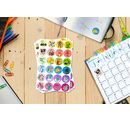 The Stickers "Motivation" have a Ø of approx. 2,5 cm and are self-adhesive. You will receive 96 different stickers in different colours.