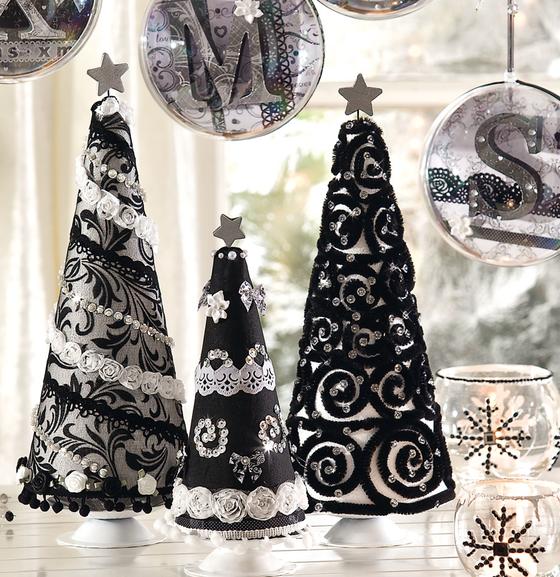 A beautiful alternative to the green Christmas tree are these stylish bowling trees, which are enthroned on candle holders. The black and white borders are accompanied by silver Sequins.