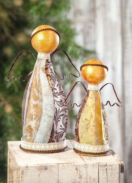 Despite - or perhaps because of their stylized form, these angels will attract all eyes. For the dress fleece and on Straw silk paper are glued Lamp foil . Romantic crochet lace completes the look.